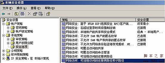 網(wǎng)絡(luò)訪問:可遠(yuǎn)程訪問的注冊表路徑和子路徑 ;