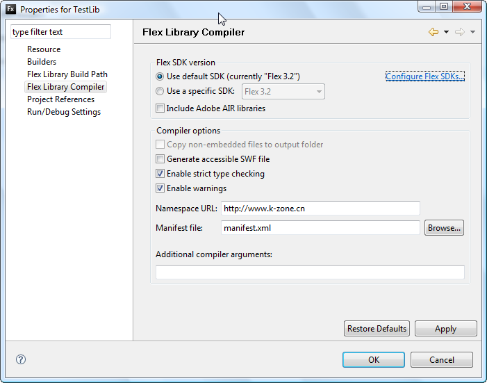-include-namespaces:在Library(swc)中包含http://www.k-zone.cn這個(gè)namespace。