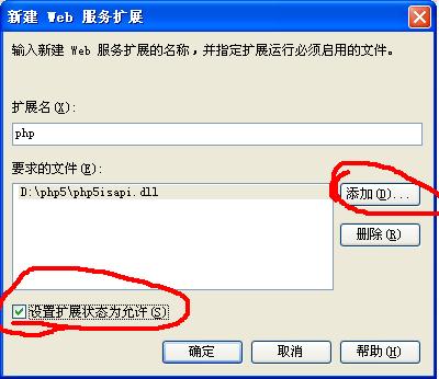 輸入phpisapi.dll文件的路徑,設置擴展狀態(tài)為允許: