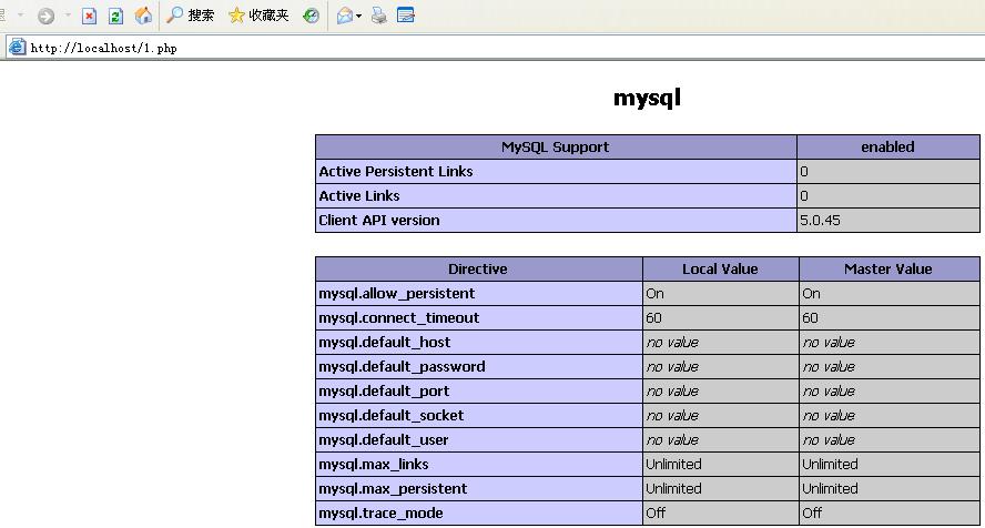 再打開我們的測試頁面,這個時候,應該能看到如下所示,表示已經(jīng)啟用mysql: