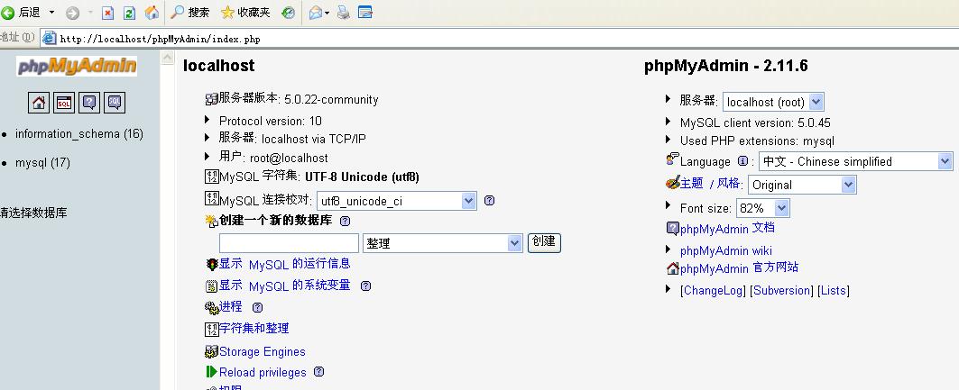 保存以后,如果能夠用瀏覽器打開下面的頁面,就可以使用phpmyadmin管理mysql了。