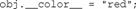 這段代碼中,屬性color是私有的。記住,這些下劃線并不改變這些屬性是公用屬性的事實(shí),它只是告訴其他開(kāi)發(fā)者,應(yīng)該把該屬性看作私有的。