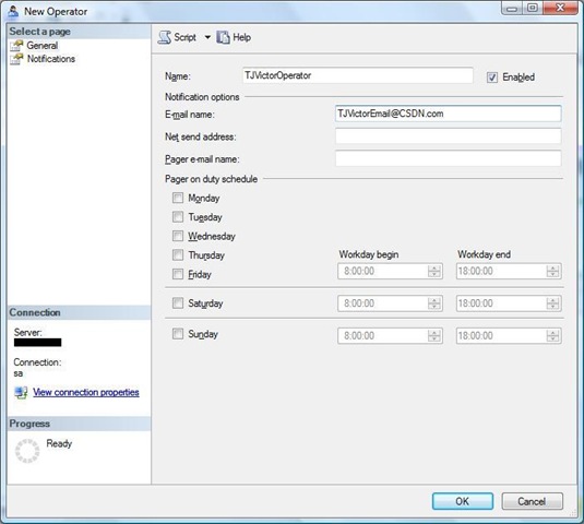 2.打開SQL Server Agent->Operators->建立一個(gè)新的Operator