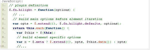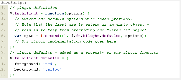 var opts = $.extend({}, $.fn.hilight.defaults, options);