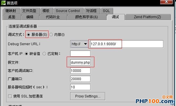 下面打開ZDE,工具菜單->首選項,選擇調(diào)試選項卡,設(shè)置調(diào)試方式為服務器,Debug Server URL填寫web服務器的URL,我這里apache的端口是8080,如果是默認80端口,就可以省略了,OK,設(shè)置完成,確定之(如圖)