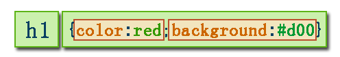 其中h1為選擇器,color:red與background:#d00與聲明,兩者結(jié)合也即{}內(nèi)稱為聲明塊;color與background稱為屬性;red與#d00稱為值。
