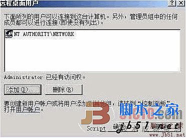 其次在該設置對話框的“遠程桌面”處單擊“選擇用戶”按鈕,打開如圖1所示的設置界面,從中我們會看到可以對Windows Server 2008服務器系統(tǒng)進行遠程控制的所有用戶賬號,一旦看到有陌生的用戶賬號或不信任用戶賬號存在時,我們可以將它選中并單擊“刪除”按鈕,將它從系統(tǒng)中刪除掉;接著單擊對應設置界面中的“添加”按鈕,打開用戶賬號設置對話框,從中將指定的管理員用戶賬號選中并添加進來,再單擊“確定”按鈕結束用戶賬號設置操作,如此一來Windows Server 2008服務器系統(tǒng)日后只允許指定的系統(tǒng)管理員對其進行遠程管理操作,而不允許其他任何用戶對其進行遠程控制操作。