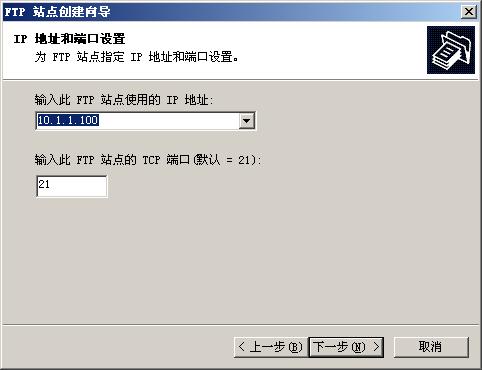 2)添加FTP站點的IP,可以和網(wǎng)站的IP設成一個,這樣方便客戶訪問與下載,端口默認為21