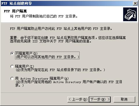 3)這里選擇是否隔離的意識是說可以通過建立不同的帳號,使不同的使用者看到不同的文件,這樣就做到了隔離效果。我在這里演示隔離效果,要選擇隔離用戶。