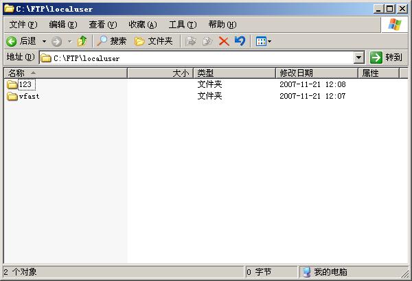 8)在localuser目錄下建立不同用戶的文件夾,注意這里的文件夾必須和用戶的名字一致 。什么都不要問,這幾個步驟是固定的,不這么做就出不來結果。