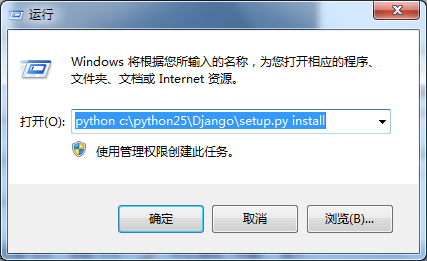 解壓Django,我是解壓到python25下,在Django目錄中有個setyp.py文件,打開運行窗口進(jìn)行安裝