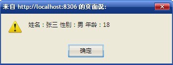 運(yùn)行后我們可以看到彈出一個(gè)對(duì)話框,顯示出這個(gè)叫張三的人的信息: