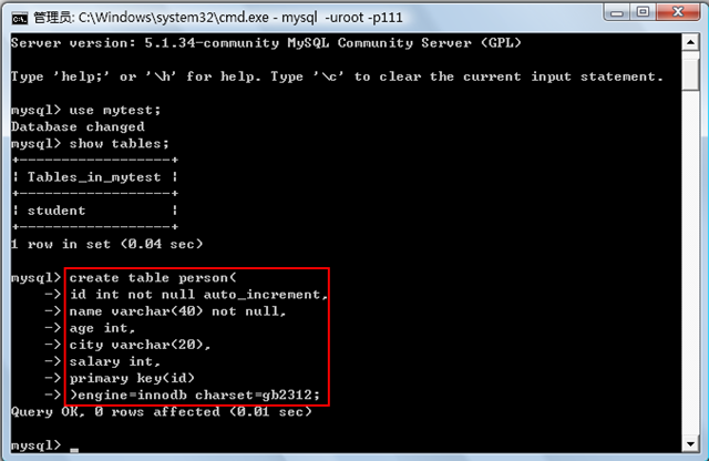 首先建立一個用于測試的表示學(xué)生信息的表,字段有id、姓名、年齡、城市、薪水。Id和姓名不