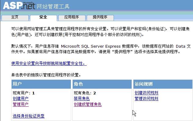 在安全選項(xiàng)卡內(nèi)有管理用戶(hù)與角色的內(nèi)容,如下圖:
