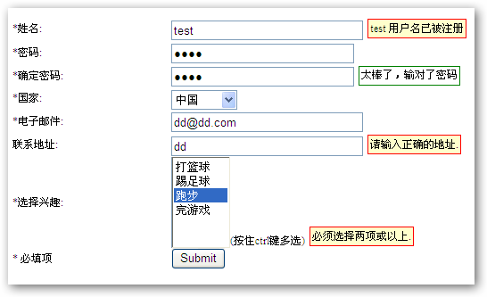 | jverrorclass | 驗證失敗后顯示提示信息時采用的css樣式的classname。(可不定義此屬性) |