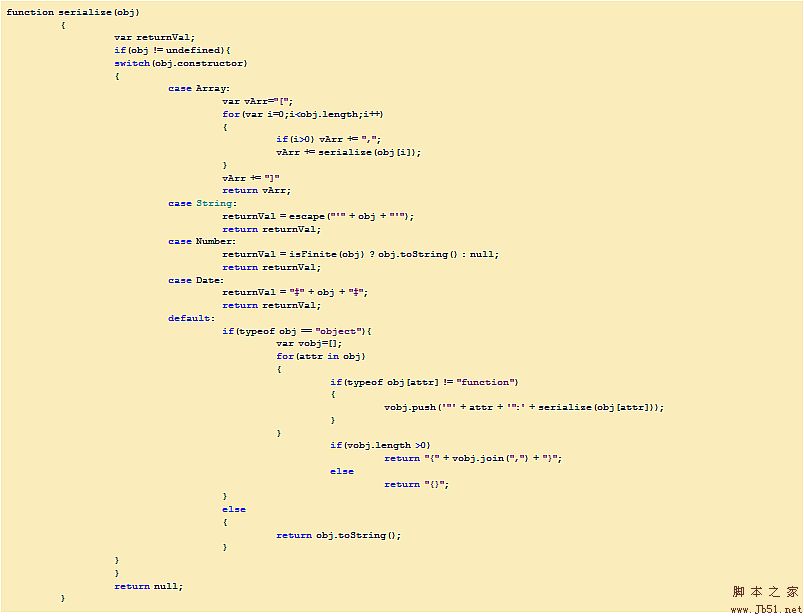 JavaScript 序列化對(duì)象實(shí)現(xiàn)代碼