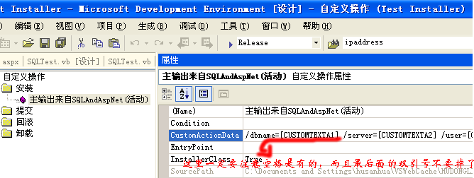 附/targetdir="[targetdir]\"是安裝后的目標路徑,為了在dbcustomaction類中獲得安裝后的路徑,我們設(shè)置此參數(shù)。
