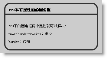 結(jié)語:目前的css因為不能為一個容器中定義多張背景圖片,造成了為了這種圓角效果而加入冗余標簽。聽說CSS3會引入這一屬性,可能到哪時,就是 圓角框統(tǒng)一的時候了。另外也聽說在CSS3中有意向加入像FF3私有屬性(-moz-border-radius)的方法,這也可以完美地解決這個問題。 但在目前的情勢下,可能也只有用上面的這些方法來過渡了,強烈期待CSS3的到來。
