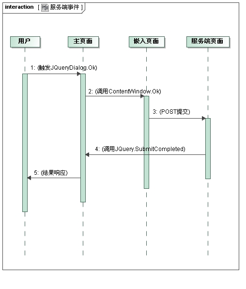 1、用戶點擊模態(tài)窗口的“提交”按鈕時,調用JQueryDialog.Ok()函數(shù),這個函數(shù)對應了用戶提交事件。