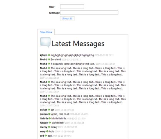 7、使用PHP和Ajax(jQuery)創(chuàng)建一個聊天室(http://yensdesign.com/2009/01/create-a-shoutbox-using-php-and-ajax-jquery)