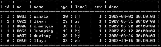 (1,'A001','wanxia',30,'hj',1,'2008-04-02 00:00:00'),