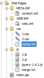 2. 搜索程序目錄下的所有merge.txt文件,根據(jù)merge.txt文件的配置合并文件, merge.txt文件實(shí)例如下: