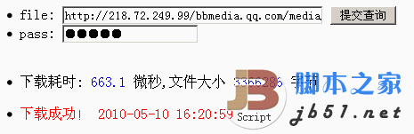 echo '<br /><li>下載耗時:<font color="blue"> '.$runtime->spent().' </font>微秒,文件大小<font color="blue"> '.$headers["Content-Length"].' </font>字節(jié)</li>';