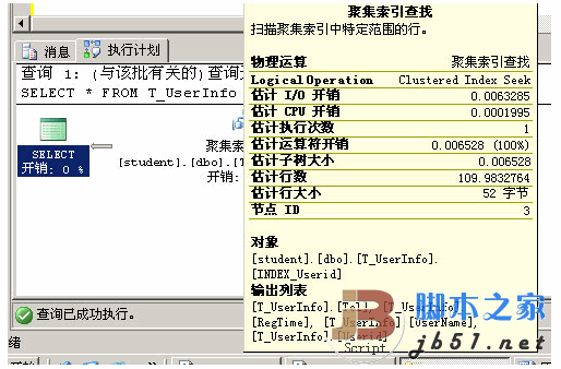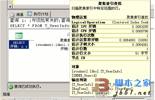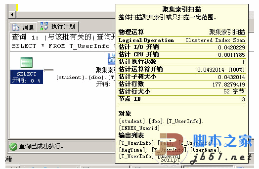 執(zhí)行CREATE CLUSTERED INDEX INDEX_Userid ON T_UserInfo (Userid)