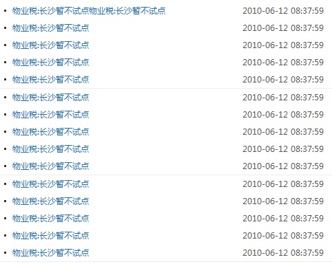 <a href="/a/xinwenzixun/caishuidongtai/20100612/2323.html">物業(yè)稅:長沙暫不試點(diǎn)物業(yè)稅:長沙暫不試點(diǎn)</a>