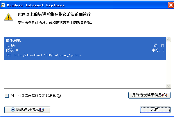Firefox提示的錯誤信息要比IE全面而且準確的多。