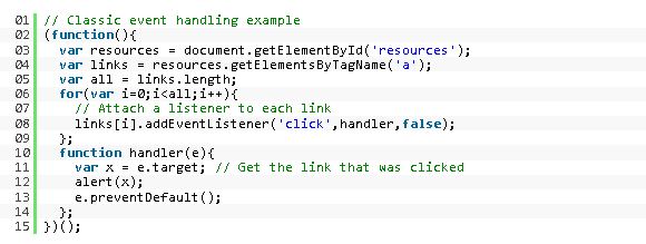 傳統(tǒng)的事件處理是遍歷各個鏈接,加上各自的事件處理: