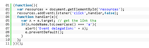 與其在 HTML 文檔中設計一堆事件,不如直接設計一個事件代理,舉例說明,假如你有一些鏈接,用戶點擊后不想打開鏈接,而是執(zhí)行某個事件,HTML 代碼如下: