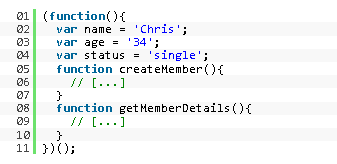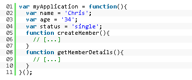 JavaScript 的一個問題是,任何變量,函數(shù)或是對象,除非是在某個函數(shù)內(nèi)部定義,否則,就是全局的,意味著同一網(wǎng)頁的別的代碼可以訪問并改寫這個變量(ECMA 的 JavaScript 5 已經(jīng)改變了這一狀況 - 譯者),使用匿名函數(shù),你可以繞過這一問題。