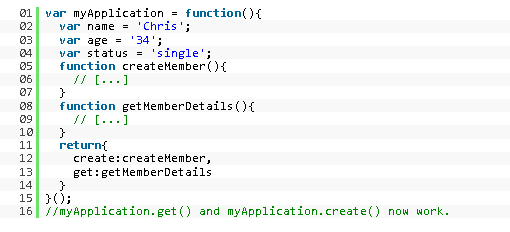 假如你想在別的地方調(diào)用里面的方法,又不想在調(diào)用前使用 myApplication 這個對象名,可以在匿名函數(shù)中返回這些方法,甚至用簡稱返回: