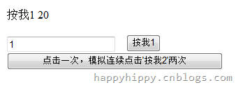 <input type="button" onclick="doubleClick();" value="點(diǎn)擊一次,模擬連續(xù)點(diǎn)擊'按我1'兩次" />