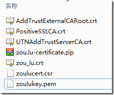 這里,zoulukey.pem 和 zoulucert.csr 是自己在 VPS 生成的,剩下的都是證書(shū)簽發(fā)機(jī)構(gòu)頒發(fā)的。