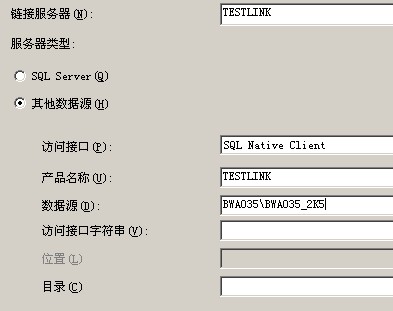 EXEC master.dbo.sp_addlinkedserver @server = N'ETV2_LINK'@srvproduct=N'ETV2_LINK'@provider=N'SQLNCLI'@datasrc=N'BWA035\BWA035_2K5'