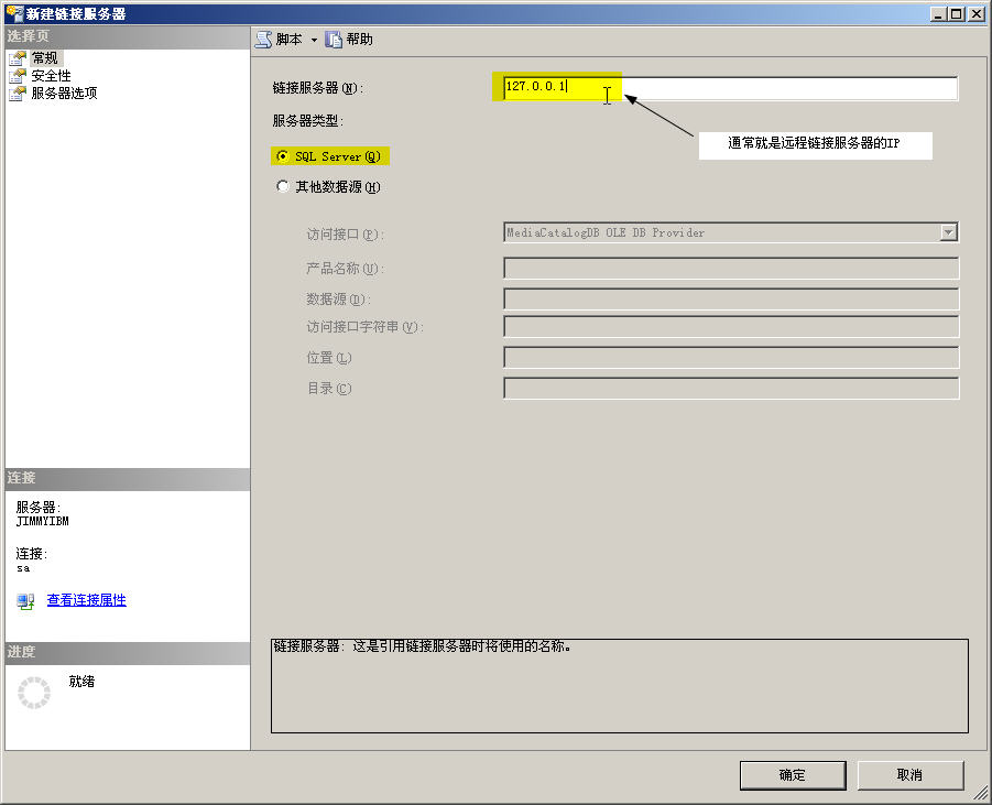 注意:必須以數(shù)據(jù)庫管理員身份登錄(通常也就是sa帳號)后,才可以創(chuàng)建"鏈接服務(wù)器"