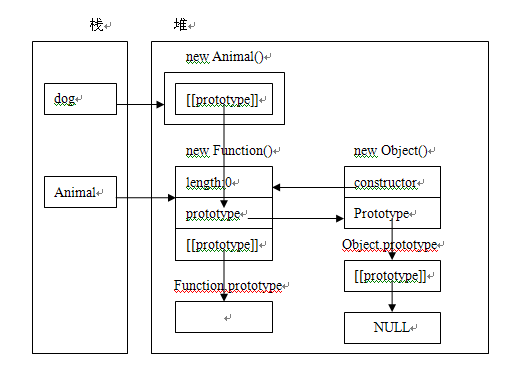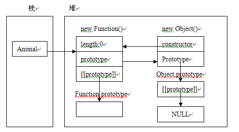 這個JS證明了步驟5的正確性。最后,還是來看一下函數(shù)對象的內(nèi)存圖,簡單起見,內(nèi)存圖只描述了Animal的構造過程: