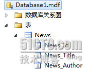 (3)我這里有一個名字叫Database1.mdf的數(shù)據(jù)庫,里面包含一個News表。