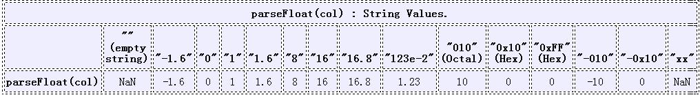 非字符串類型轉換成為快速轉換,作為一個字符串傳遞給 parseFloat 。當那些類型轉換作為字符串時不在是正常的結果,它的解析結果是 NaN,Objects 和 functions 。可能有自定義 toString 方法返回字符串將會被解析成為數(shù)值,這是一個特殊的要求。