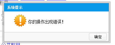 <div class="alertParent"><BR><div class="alertContent"><BR><h2 class="title">系統(tǒng)提示</h2><BR><div class="alertHtml"><BR>你的操作出現(xiàn)錯誤!<BR></div><BR> <div class="btnBar"><BR> <input