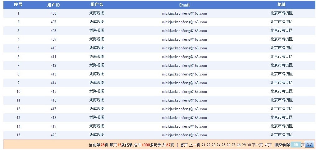 this._data.Add(new User { ID = i + 1, Address = "北京市海淀區(qū)", Email = "mickjacksonfeng@163.com", UserName = "憑海觀瀾" });