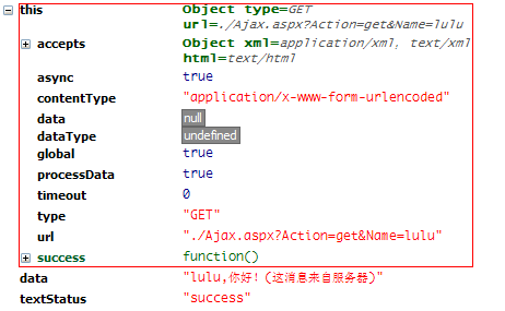 Response.Write("{result: '" + Request["Name"] + ",你好!(這消息來自服務器)'}");