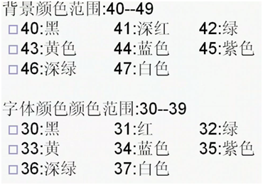 echo –e “33[40;35mHell,world33[0m"