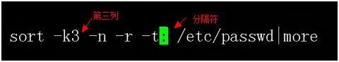 sort –d /etc/passwd|more 中間的|是反倒符號(hào)。 將前面處理的交給后面處理     先排序。后分頁顯示