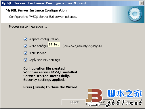 待文件復(fù)制安裝完畢后,進行MySQL設(shè)置界面,單擊Finish。