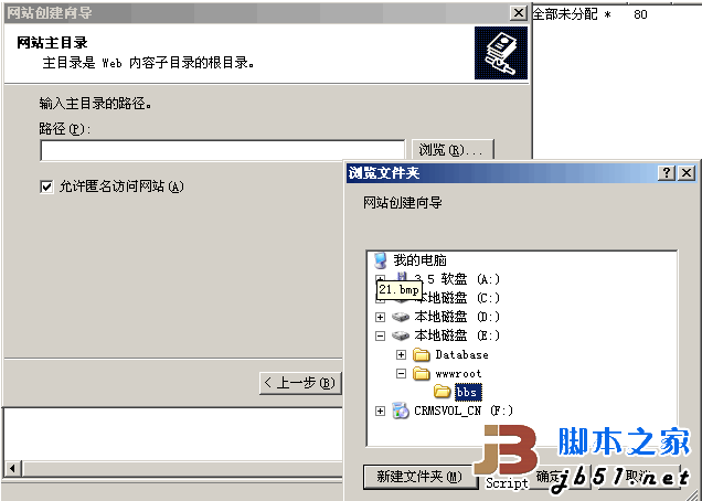 在網(wǎng)站分區(qū)中建立wwwroot以及下級站點文件夾bbs