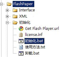 安裝方法很簡(jiǎn)單,將Flashpaper文件夾復(fù)制到待安裝文件夾,在初始化文件夾中點(diǎn)擊 初始化.bat 文件即可執(zhí)行安裝(無(wú)病毒,呵呵,可放心安裝)。