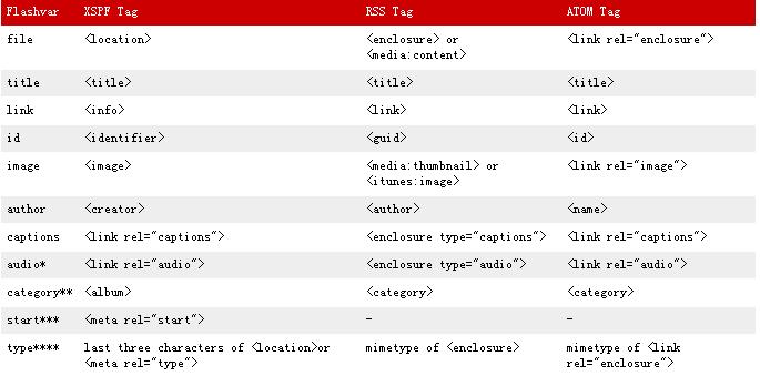 **** XSPF列表格式中的"location"元素中如果不包含常見的擴展名(如 "mp3" or "flv"),可以使用"meta"元素指定文件格式。(如 <meta rel='"type">mp3</meta> ).在使用RSS和ATOM的情況下,文件格式被自動的根據(jù)mimetype來識別。